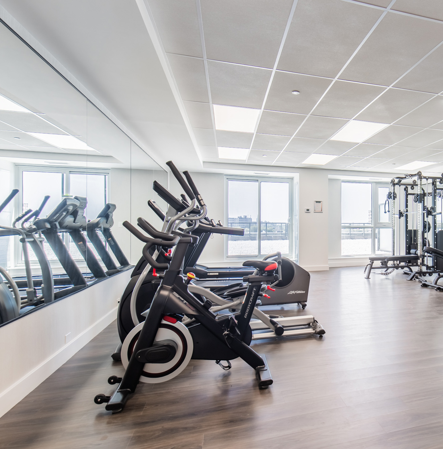 Enjoy the ease of everyday living with our welcoming lobby fireplace lounge, well-equipped gym, bicycle room, and pet wash, designed to complement your lifestyle seamlessly.